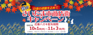 豪華賞品を当てよう!さいたま市商店街 秋のキャンペーン! ~たとえばこんな賞品が当たります!!~一等:JTBトラベルギフトカード型旅行券(20本)二等:電動自転車(30本)三等:SHARP ヘルシオホットクック(150本 […]